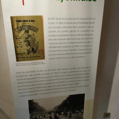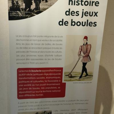 Cette exposition fourmille d’objets, trophées, textes et dessins qui illustrent le parcours de notre sport de 1900 à 1970. Pour mettre en place cette abondante source de souvenirs, Madame Jouve a sollicité plusieurs intervenants comme le musée de Bourgoin-Jallieu et sa directrice Madame Riboreau, la Fédération Française de Sport Boules, le Comité Bouliste du Rhône et de la Métropole de Lyon et différents clubs et associations sportives locales. Tous ont répondu favorablement à la demande tant le projet semblait alléchant. Vint ensuite le travail de rédaction de 11 panneaux qui relatent l’histoire et l’évolution des Clos du Nord-Isère.